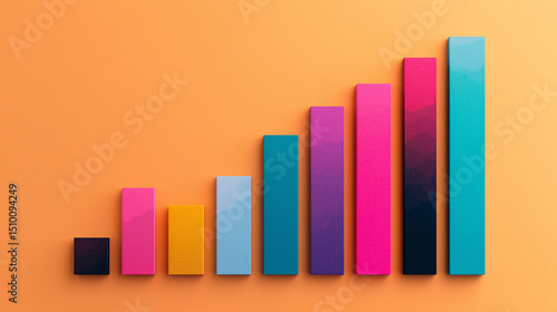 Colorful bar graph showing growth against an orange background.