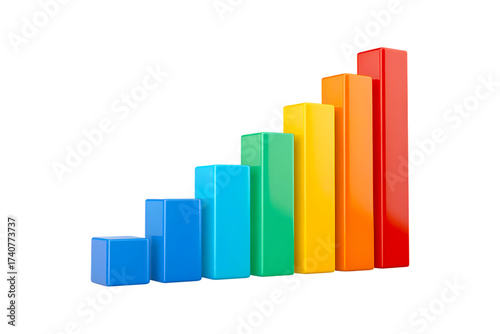 Colorful bar graph showing growth isolated on transparent background for business