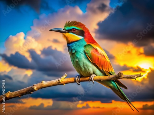 Colorful Bird Perched on a Branch Against a Bright Sky Showcasing Nature's Vibrant Beauty