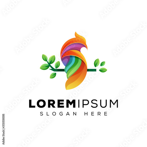colorful bird with leaf logo, nnatural beauty bird logo template