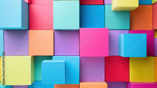 Colorful blocks create vibrant and creative business concept, showcasing playful arrangement of geometric shapes. This lively composition inspires innovation and imagination