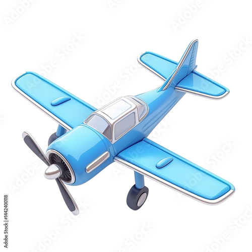 Colorful blue toy airplane model on display PNG image with transparent background