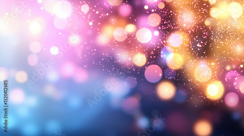 Colorful bokeh lights with pink, purple, gold and blue blurred background. Holiday celebrations, luxury events, beauty product marketing