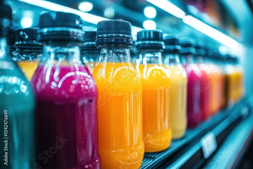 Colorful Bottled Juices in a Chilled Display Case at a Modern Retail Store