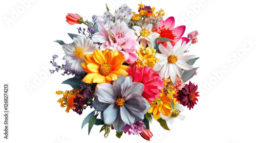 Colorful bouquet of flowers isolated on transparent background