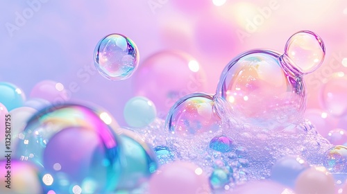 Colorful Bubbles Floating on Soft Vibrant Background with Sparkles