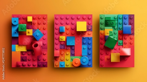 Colorful Building Blocks Arrangement on Vibrant Background