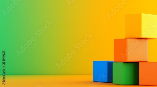 Colorful building blocks stacked on a vibrant gradient background, ideal for children's education