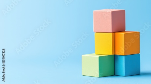 Colorful Building Blocks Stacked on Blue Background for Playful Scene
