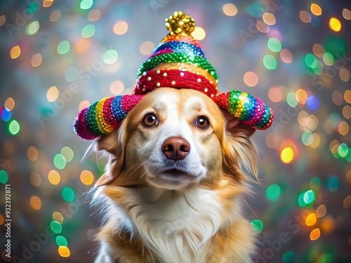 Colorful canine party animal donning a vibrant hat explodes with joy, exuding the energetic and lively essence of a lively fiesta celebration.