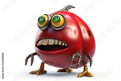 Colorful cartoon character with big eyes and mechanical legs presents unique design elements