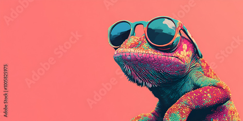Colorful Chameleon with Sunglasses