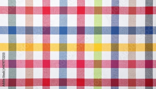 Colorful checkered picnic tablecloth as background, top view