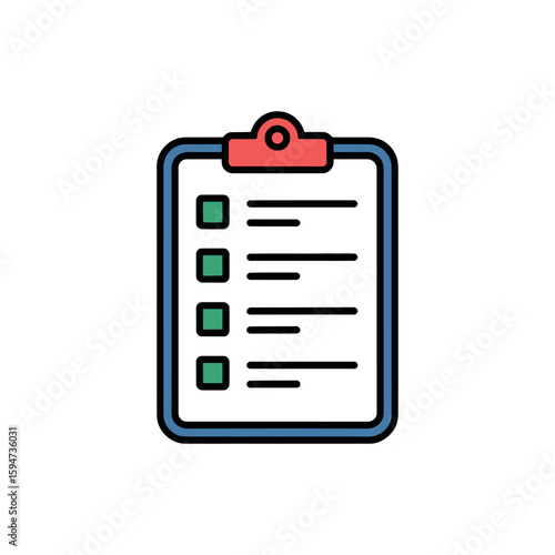 Colorful clipboard icon with check boxes and blank lines isolated on white background