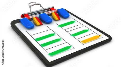 Colorful Clipboard with Checklists and Summary Marks for Efficient Task Management