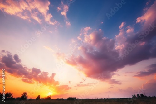 Colorful cloudy sky at sunset , quiet sunset background, Generative AI