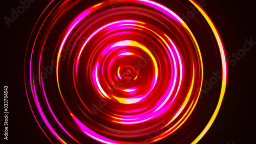 Colorful concentric neon circle. Multicolor RGB swirl background. Neon futuristic abstract magic circle. Spiral illustration. Wavy pattern. 3D rendering.