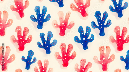 Colorful coral designs on a transparent background with blue and red hues spread across the surface