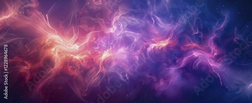 Colorful cosmic abstraction with cloud-like formations resembling a nebula in space, AI generated