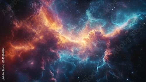 Colorful Cosmic Nebula with Bright Stars and Swirling Interstellar Clouds