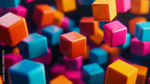 Colorful crystals glow against a dark geometric background in this abstract design.