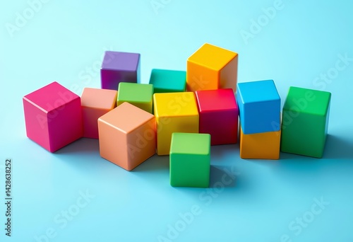 Colorful cubes arranged artfully on a bright surface, cubes, art composition