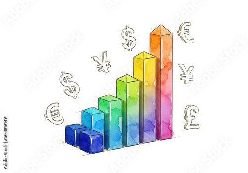 Colorful currency graph showing growth isolated on transparent background