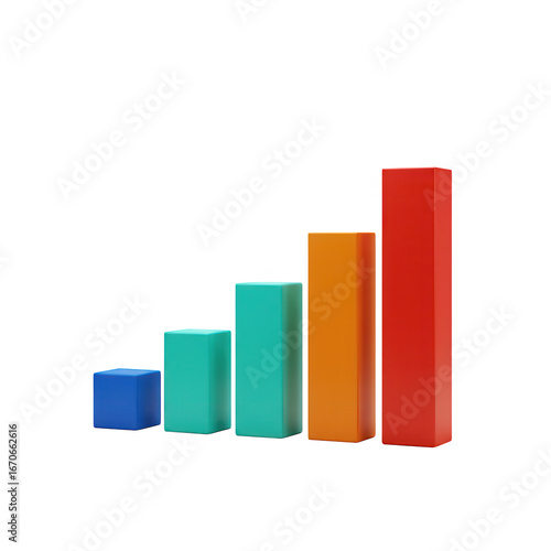 Colorful cylindrical bars arranged in an ascending growth chart pattern isolated on transparent background