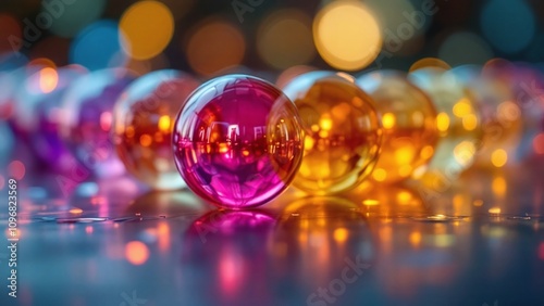 Colorful Decorative Balls with Bright Reflections and Bokeh Lights