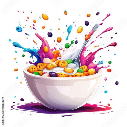 Colorful Dessert Bowl with Splashes of Cream and Toppings