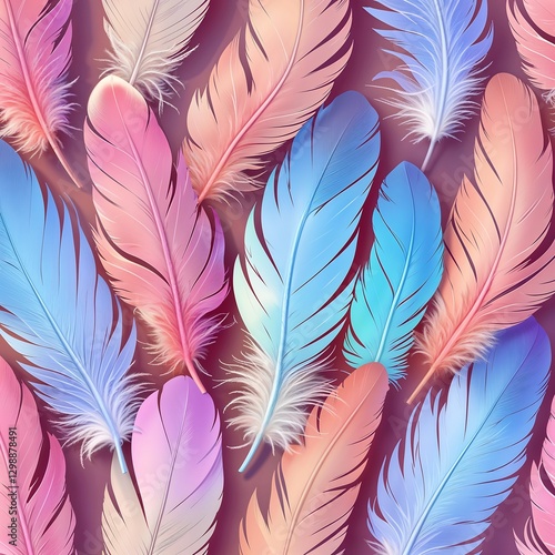 Colorful Digital Artwork with Layered Feathers in Overlapping Pattern