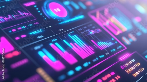 Colorful digital dashboard with graphs and data visualizations, ideal for technology and analytics themes.