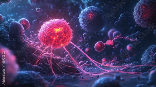 Colorful Digital Rendering of Microscopic Cells with Vibrant Textures