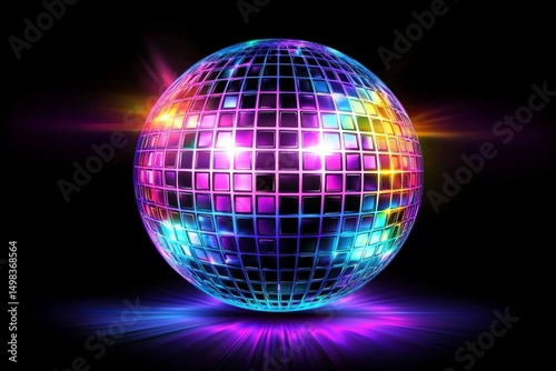 Colorful disco ball with a bright light shining on it