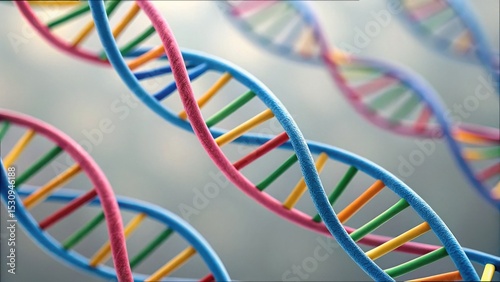 Colorful DNA Strands Representing Genetic Connection and Structure