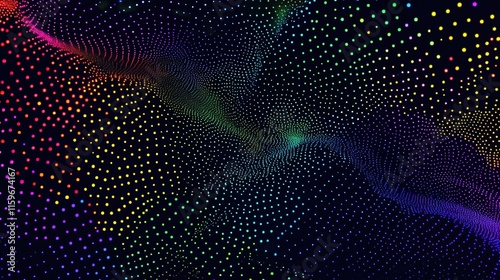 Colorful dots create mesmerizing wave-like pattern across dark b