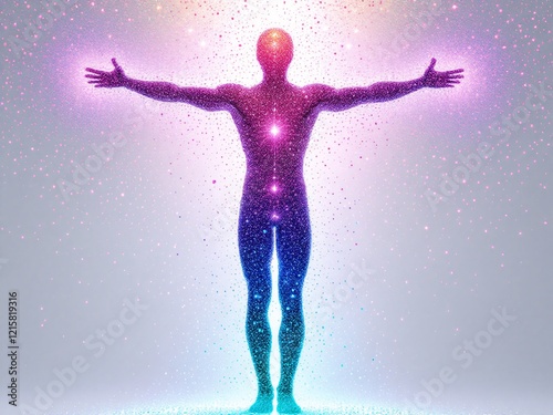 Colorful dotted gradient figure in abstract, artistic design, symbolizing creativity and imagination.