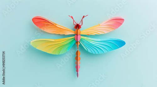 Colorful Dragonfly paper art on a simple background