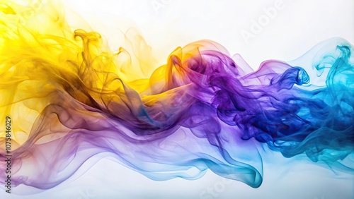 colorful dynamic smoke on light background yellow lilac and blue wave multicolor abstract High Angle
