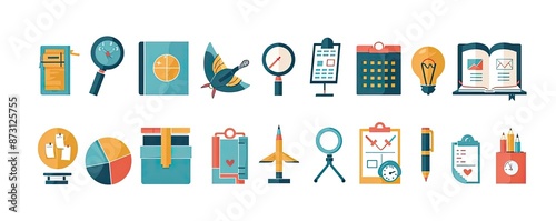 Colorful educational and business icons, ideal for presentations, reports, and school projects.