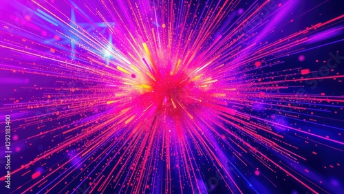 Colorful explosion of light and energy creating bright patterns in a vibrant digital space. Generative AI
