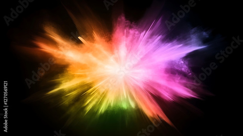 Colorful Explosion of Light and Powder in a Dark Void for Creative Backgrounds and Designs
