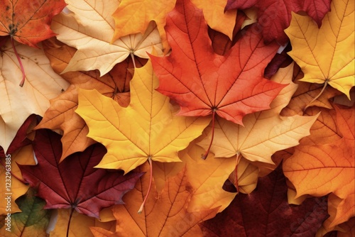 Colorful Fall Leaves Background, Maple Trees in Yellow, Orange, and Red Hues Creating a Vibrant and Stunning Autumn Scene