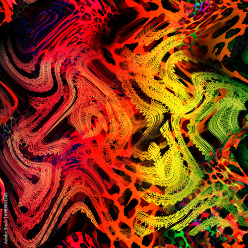 Colorful fashion print leopard designs.Fabric fashion pattern.Wave textile print design,illustration.Fractal colorful pattern.Print pattern illustration.New season fabric print.Textile fashion pattern