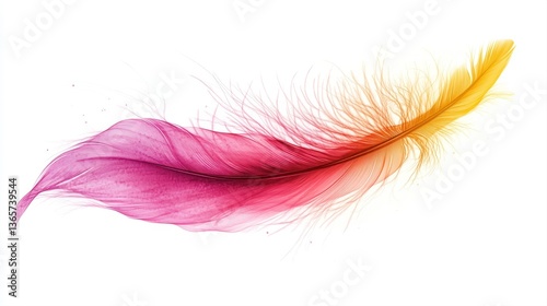 Colorful Feather with Gradient of Pink and Yellow on a White Background for Artistic and Creative Designs
