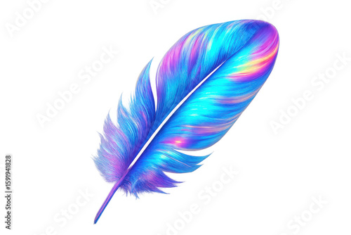 Colorful feather with iridescent hues isolated on a transparent background, ideal for creative projects