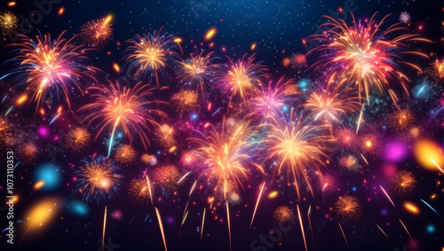 Colorful firework with bokeh background. New Year celebration