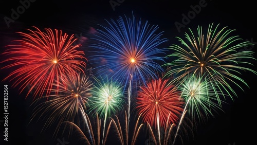 Colorful fireworks illuminate the night sky, creating a festive atmosphere with bursts of light and vibrant colors.