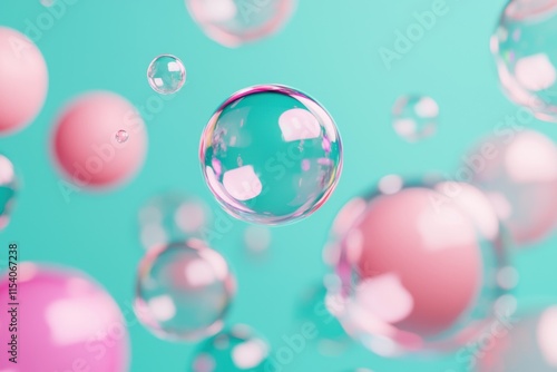 Colorful Floating Bubbles on a Bright Turquoise Background