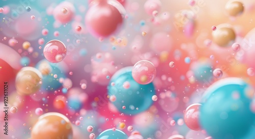 Colorful Floating Bubbles on a Soft Background in Bright Pastel Shades